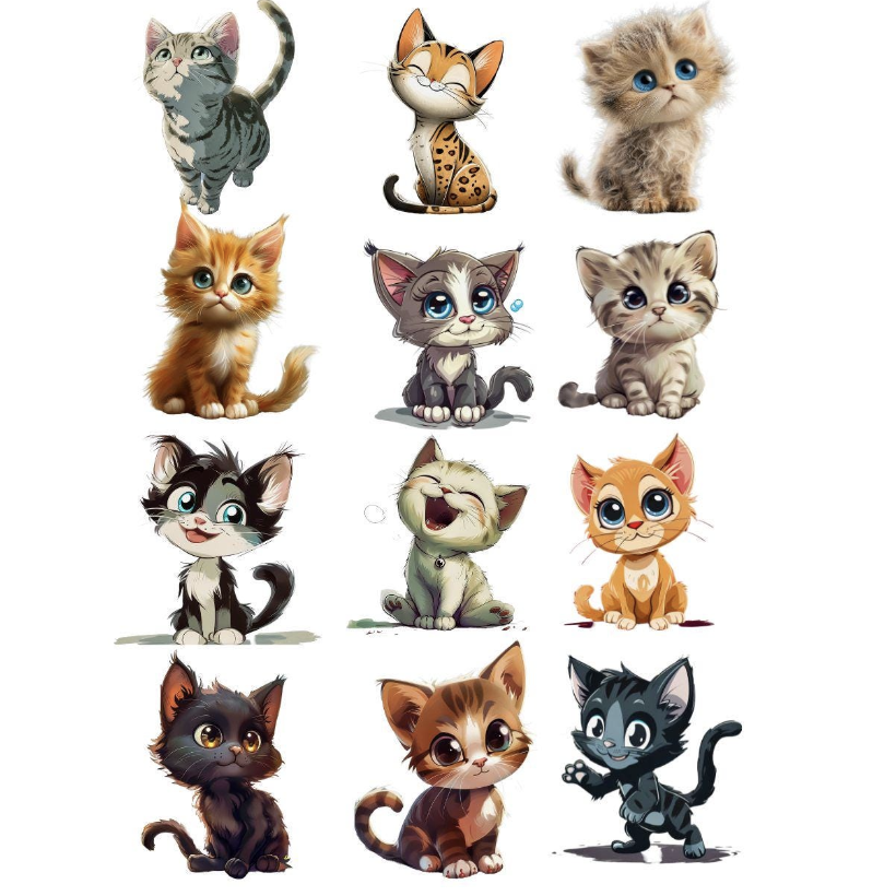 Cartoon Kitten Designs, Playful Cat Illustrations, Digital PNGs No49