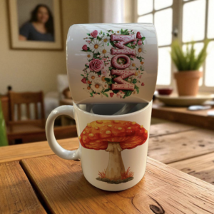 Two Stacked Mugs PSD Mockups, Pair of Coffee Cups Scene for Sublimation, JPG Files, Different Backgrounds No63