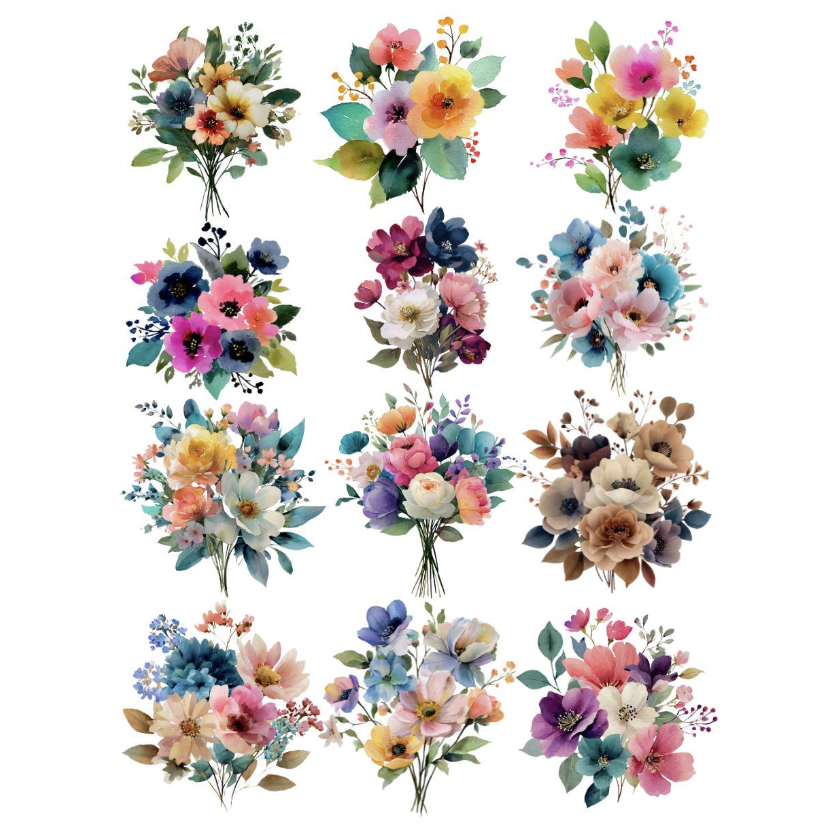 Watercolor Bouquet Clipart, Pastel Flower SVG- and PNG Digital Designs No53