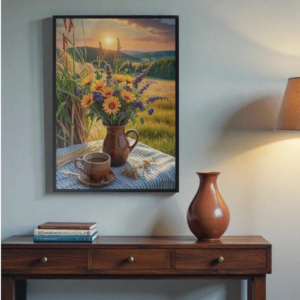 Still Life Painting Print, Floral Coffee Cozy Atmosphere, Rustic Farmhouse Wall Art No79