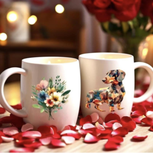 White romantic mug mockup, custom kitchenware gift for Valentine’s Day, Romance Theme No22